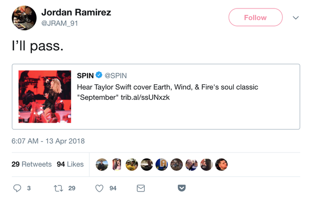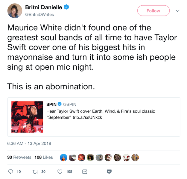 People Are Refusing To Listen To Taylor Swift's Cover Of Earth, Wind & Fire's "September"