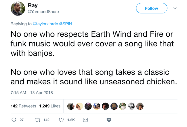 They thought it was extremely disrespectful to both the band and the song, which is widely considered a soul and funk classic.